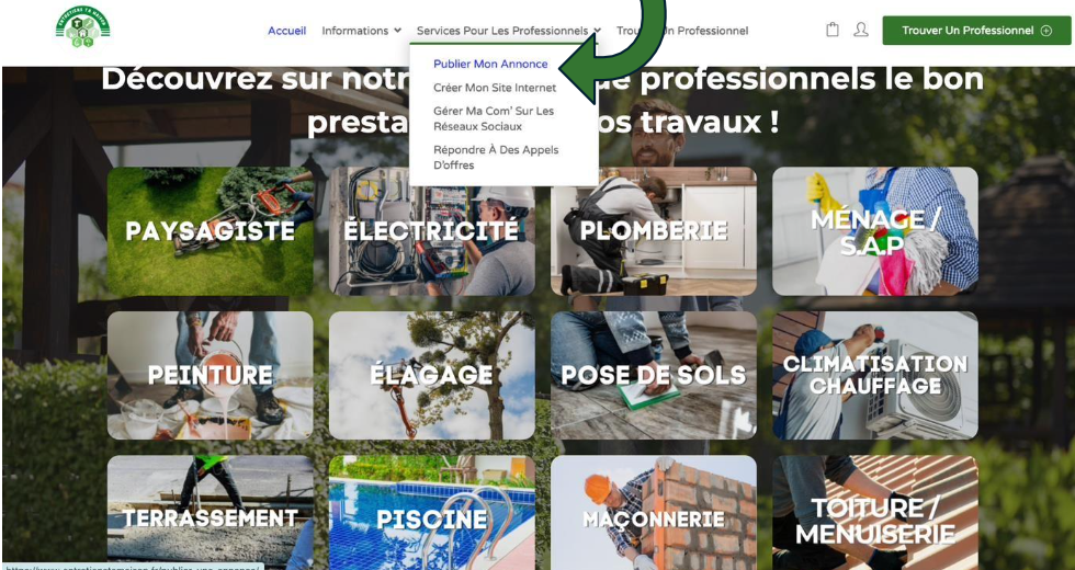 Étape 1 : Cliquez simplement sur « Publier ma page professionnelle » dans « Services pour les professionnels »