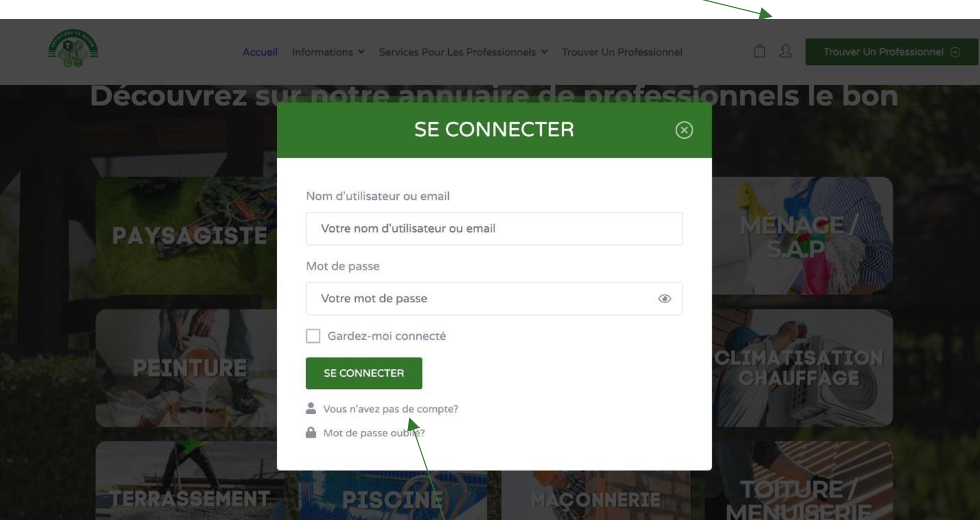 Étape 1 : Créez votre compte en cliquant sur le buste en haut à droite de la page d’accueil. Ensuite cliquez sur « Vous n’avez pas de compte »