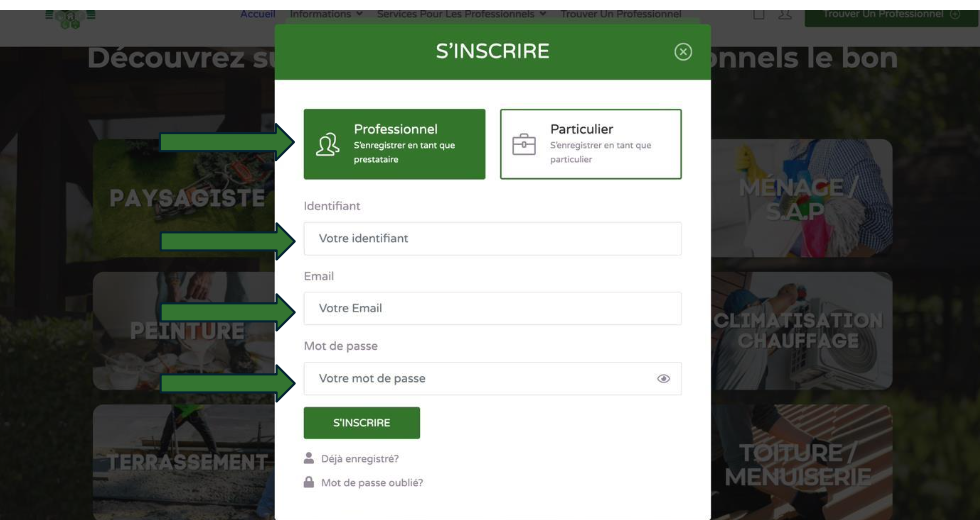 Attention, cliquez bien sur « Professionnel » pour ouvrir un compte professionnel et non particulier.