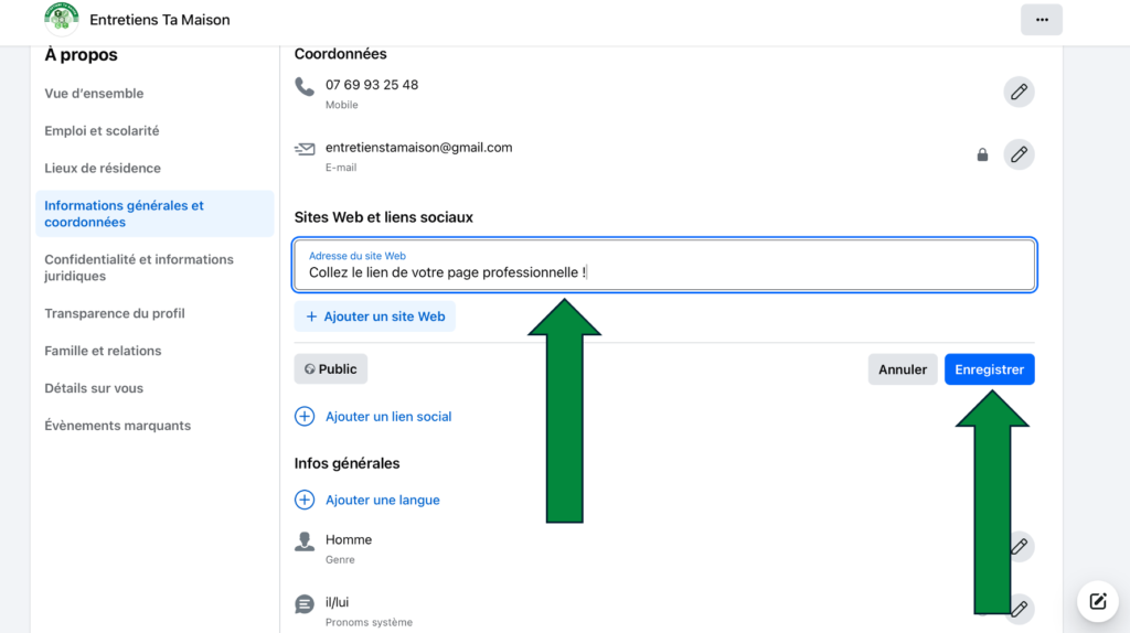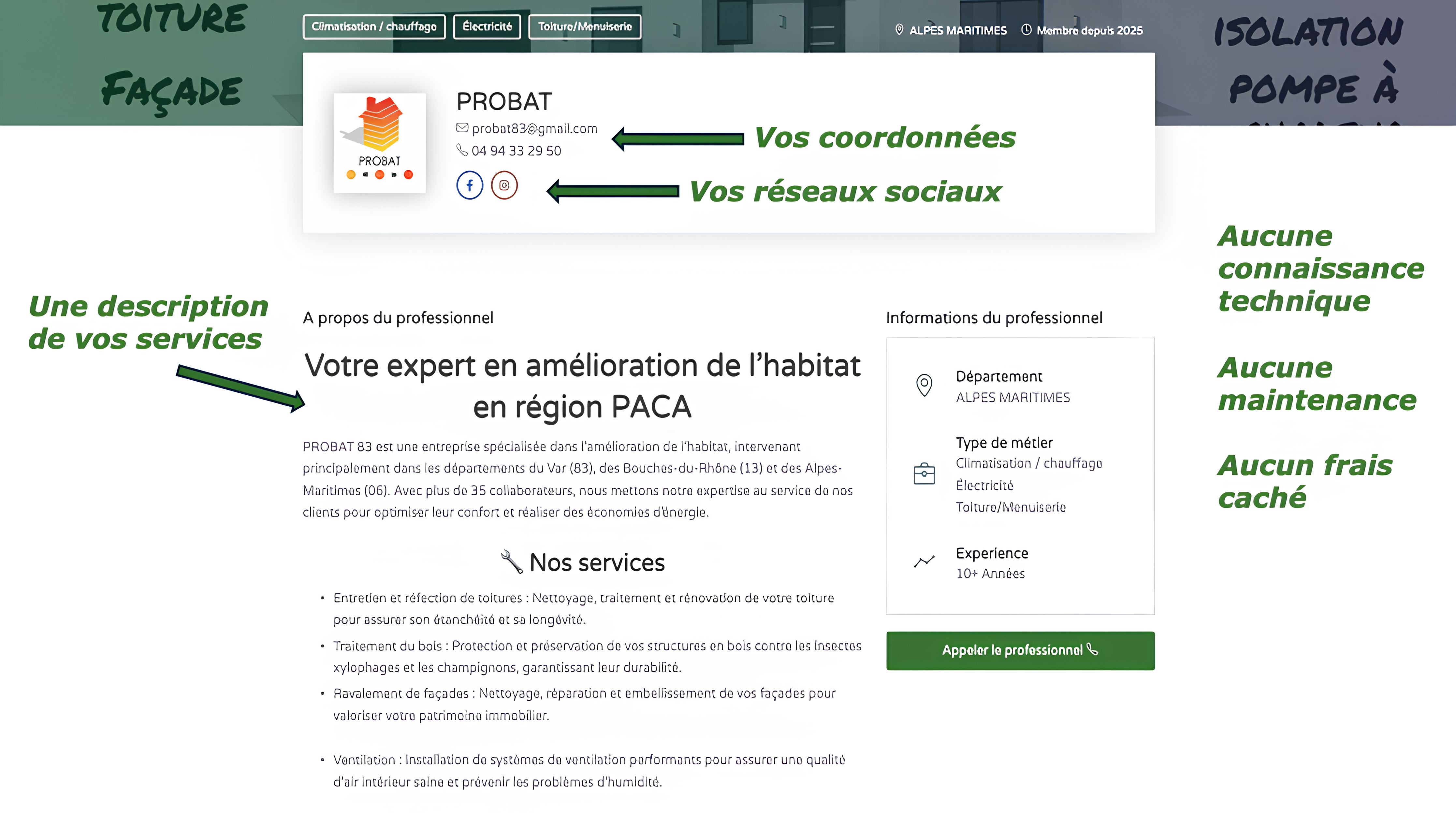 - Une page professionnelle équivalente à un site vitrine référencée sur Google !