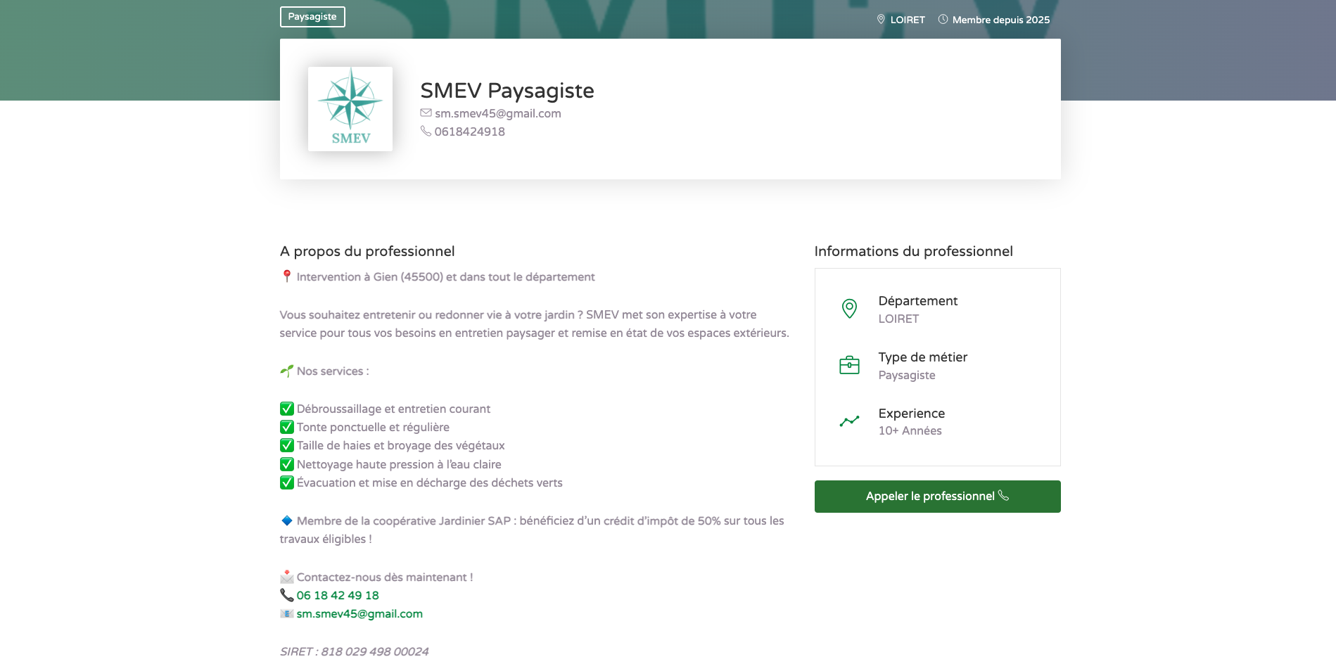En cliquant tout simplement sur Publier ma page professionnelle dans la rubrique Services pour les professionnels remplissez le formulaire en renseignant vos services, votre département de localisation ainsi que vos coordonnées.