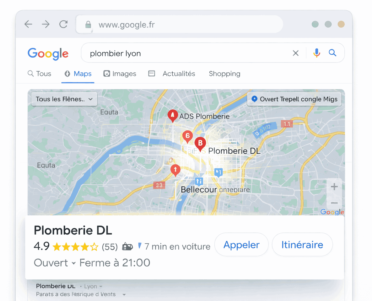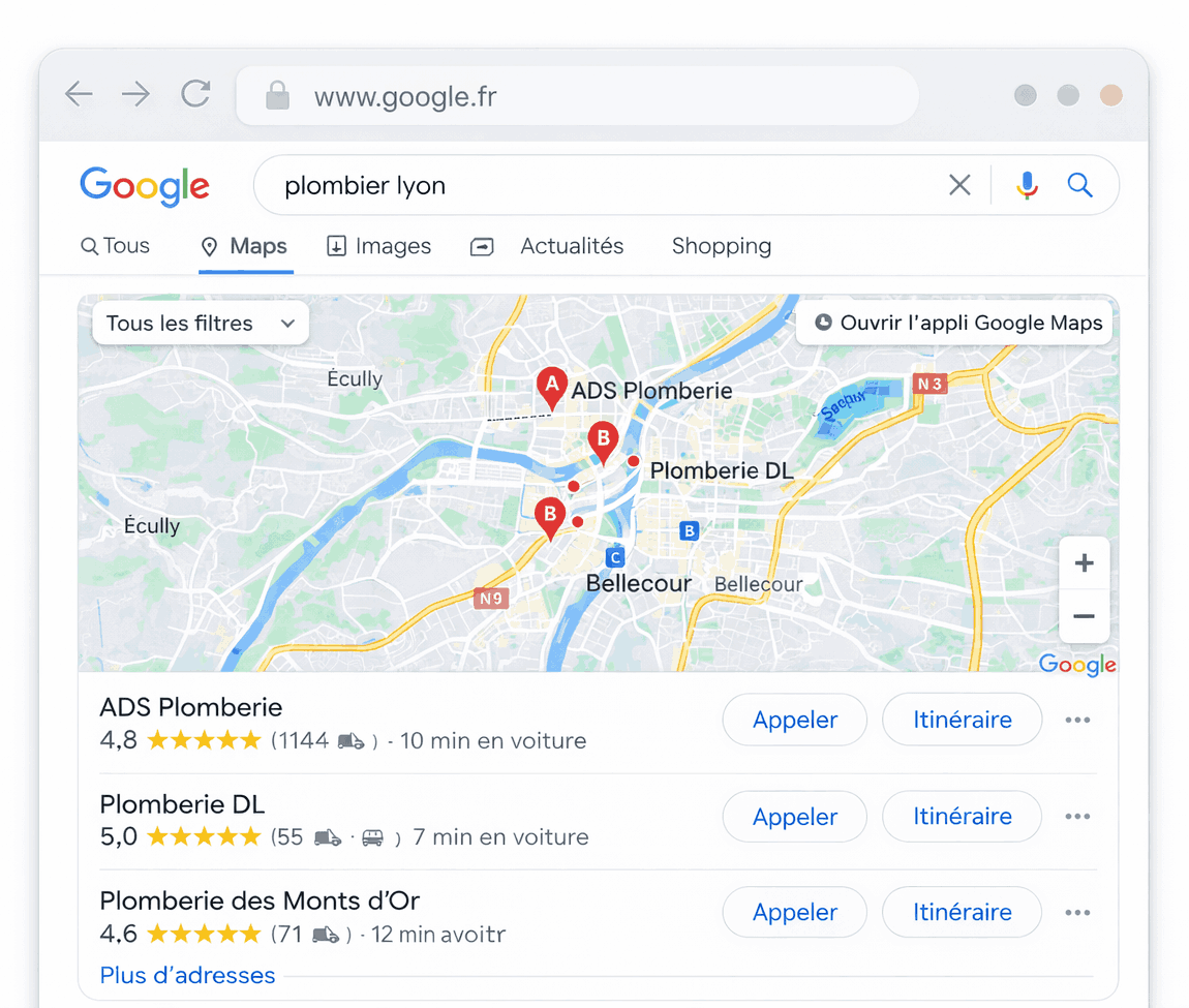 👉 On crée et gère votre fiche Google pour vous rendre visible localement et vous aider à recevoir plus d’appels.